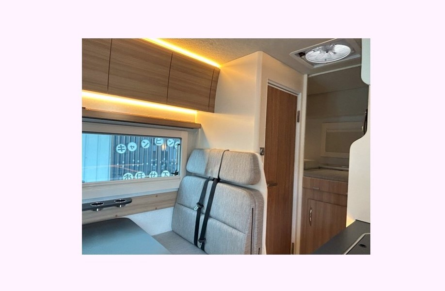 運転席上のバンク部分も含めエクステリアもすっきりとしたデザインで上品で明るい室内です。
