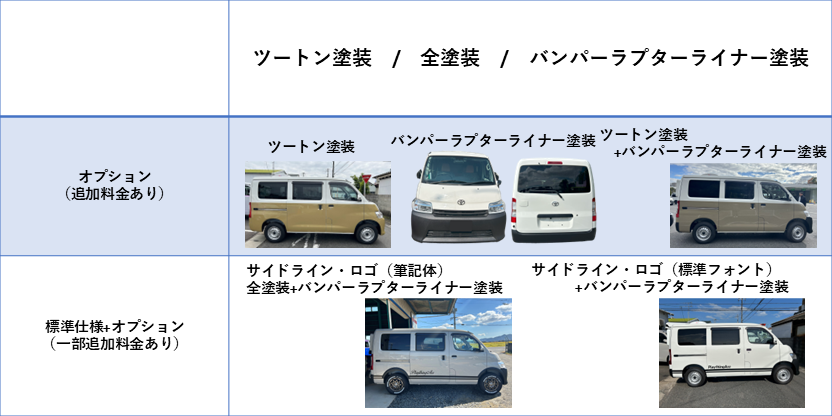 オプション項目にも外装にかかわるものがいくつかあります!上記の表は一部のご紹介となりますが・・・