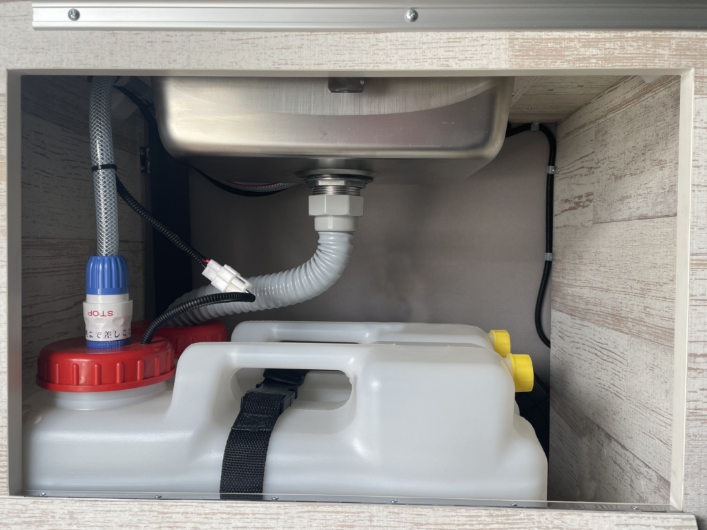 メリットは先ほどお伝えした通り、収納スペースも確保しつつ、お水もいつでも使用できるということです。給水タンクへのお水の補充は行っていただく必要はありますが、いざという時にいつでも水道を使用できることは車中泊をする方にとってとても役立つことだといえます。