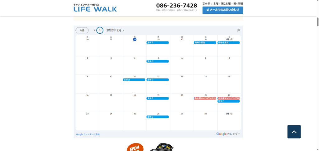 なんと!ホームページにカレンダーが表示されるようになりました👏
