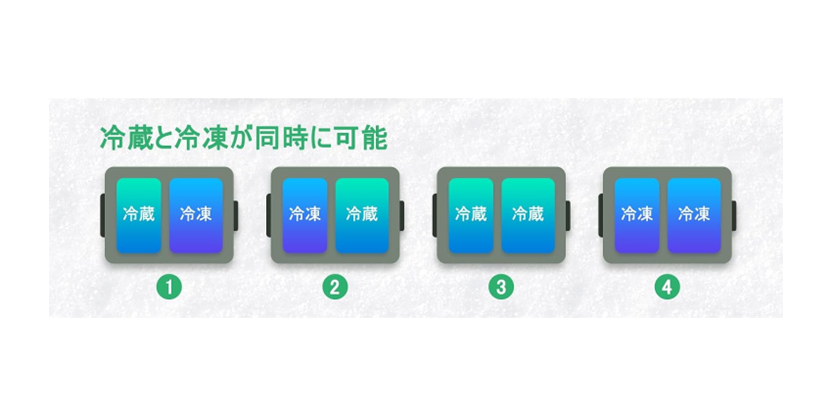 (例:左側 食品・飲料用6℃:右側 冷凍食品用-20℃)