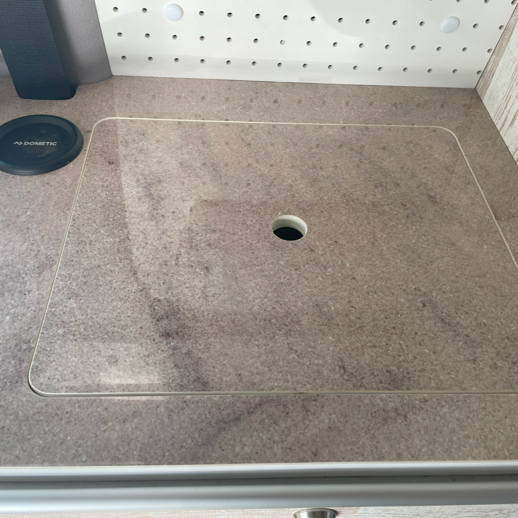 底がマグネットになっており専用コースターに取り付けているので走行中でも倒れることはなく、取り外しも簡単です。水道設備を使用しない時は外してフラットにすることで調理台やテーブルとして使えます。