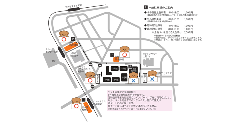 ペットちゃん同伴でご来場予定の方は1部駐車場をご利用いただくことができません。ご注意ください。