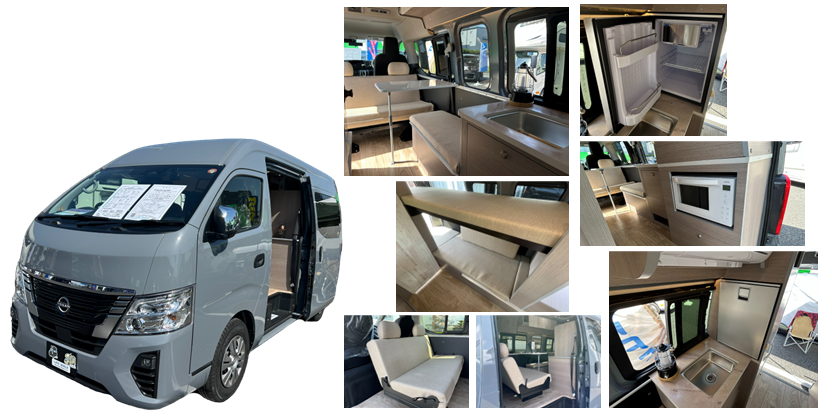電子レンジ・冷蔵庫などを標準装備に備えたキャンピングカーになっています。